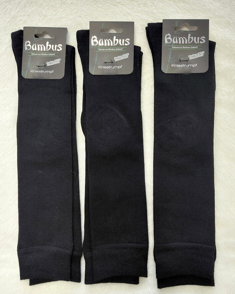 3 Paar MH Bambus Glück Kniestrümpfe ohne Gummi Schwarz