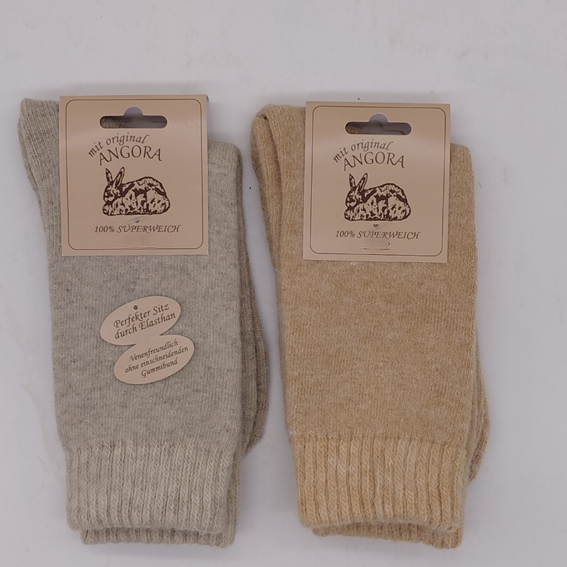 2 Paar Thermo Angora Woll Socken Schaf und Angora Wolle Beige und Natur